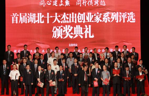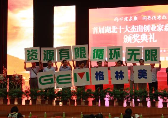 ????? 2012年8月30日,首屆湖北十大杰出創業家頒獎典禮在東湖國際會議中心隆重召開,逾50多家企業、政府、企業界近1000多人和全省的優秀企業家齊聚一堂,共同慶祝此次民營企業盛會。武漢格林美資源循環有限公司榮膺 “湖北民營經濟最具社會責任感企業”光榮稱號,武漢格林美資源循環有限公司總經理王健代表公司參加頒獎典禮并領取了“湖北民營經濟最具社會責任感企業”獎項。