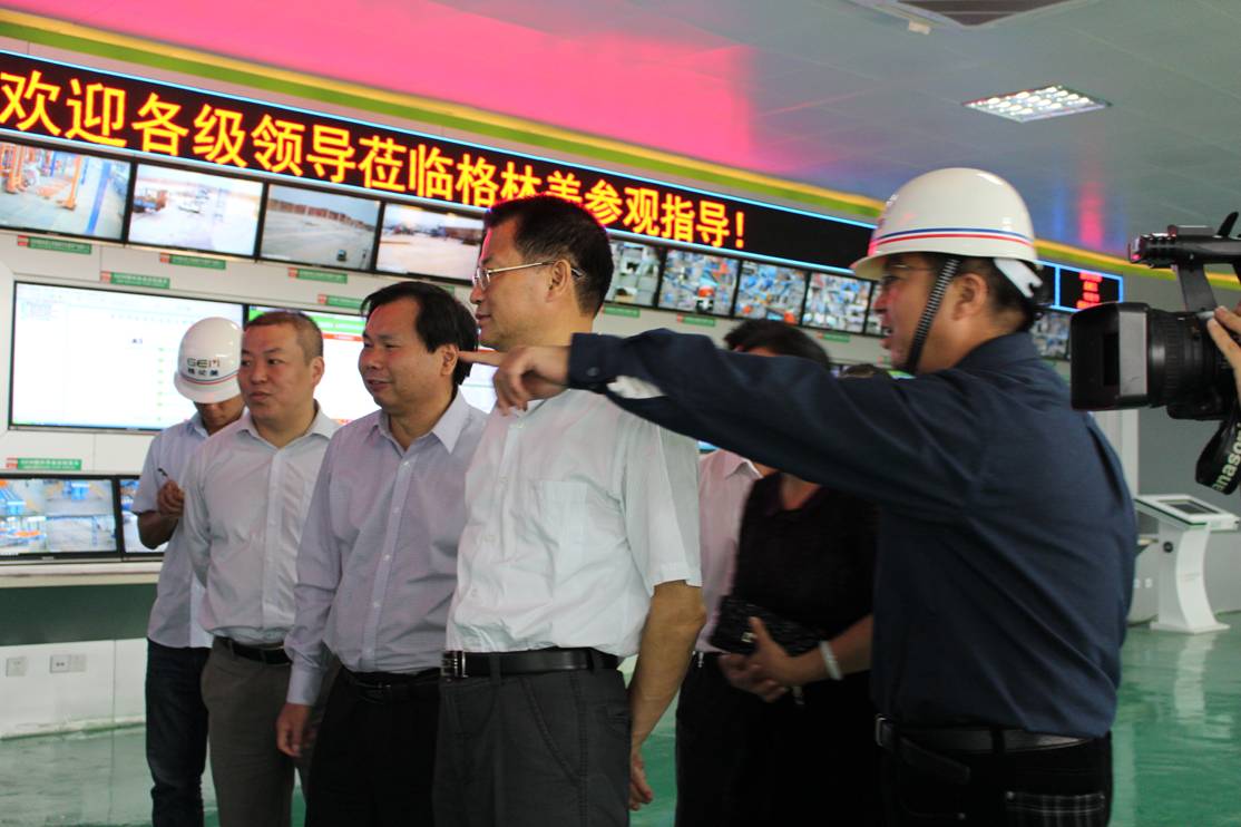 圖2.總經理劉玉平(右一)向肖伏芝副書記(右二)一行詳細介紹格林美信息監控平臺
