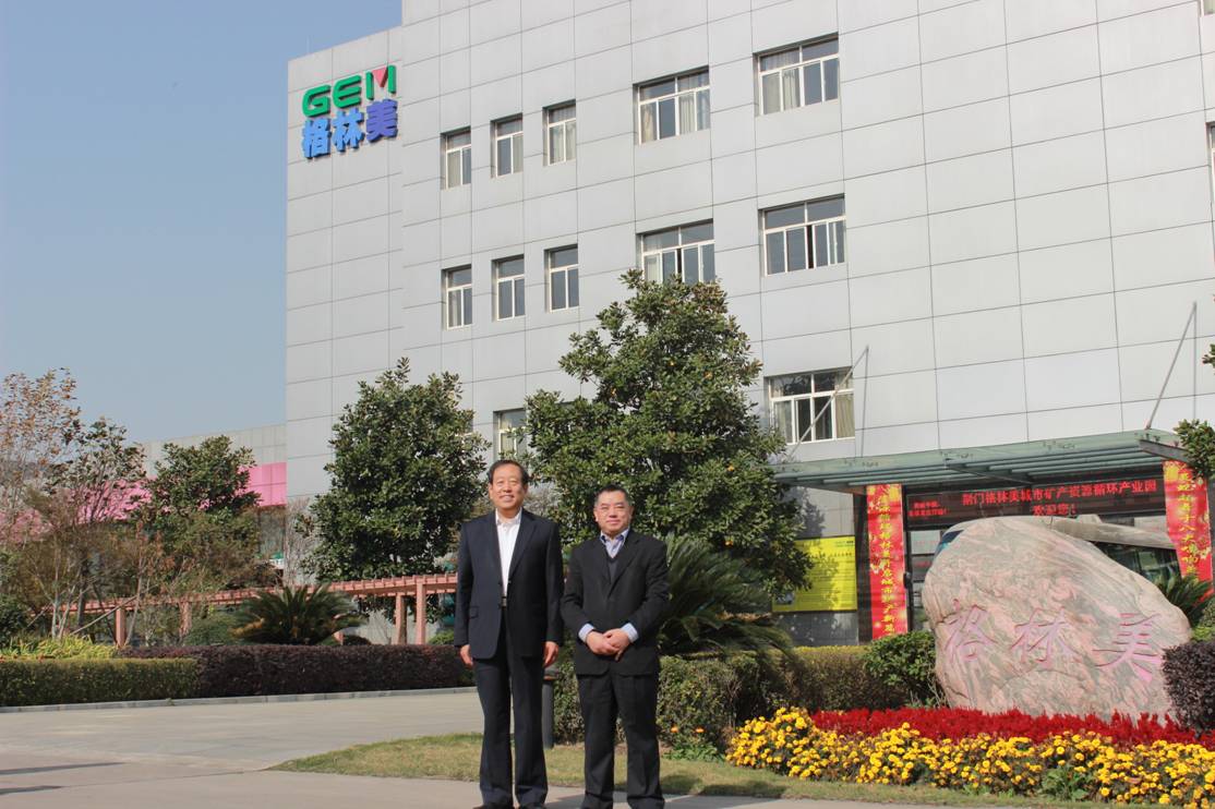 圖六 許開華董事長(右一)與劉長順主任(左一)在格林美城市礦產循環產業園合影留念