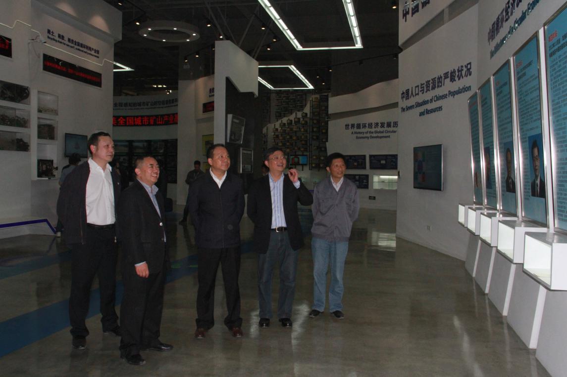 圖三 許開(kāi)華董事長(zhǎng)(左二)陪同萬(wàn)勇書(shū)記(左三)參觀循環(huán)經(jīng)濟(jì)博物館