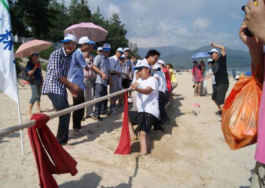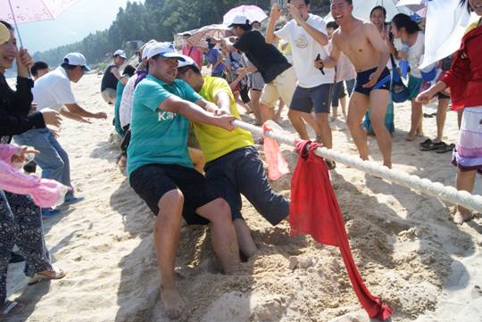 圖三 沙井公司參加拔河的隊員,大家齊心協力,贏得了最后的勝利