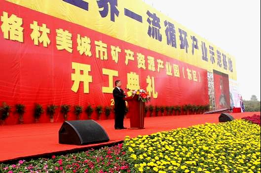 周長益司長在致辭中高度贊揚了格林美在電子廢棄物拆解處理技術和管理模式的先進水平,為中國廢舊資源的循環利用起到了很好的示范作用,國家部委把格林美定為國家循環經濟試點企業是完全正確的。李新民巡視員表示對格林美打造為世界領先的循環產業集團,為中國建設資源節約型、環境友好型社會做出示范寄予厚望。荊門市市委常務、常務副市長周松青代表荊門市人民政府表態,將一如既往地竭誠為公司提供全方位的服務,千方百計為循環產業園建設排憂解難,全力創造最優的發展環境,支持格林美在荊門的循環產業做大做強,努力使循環產業園成為國家“兩型社會”建設與循環經濟創新的典范。