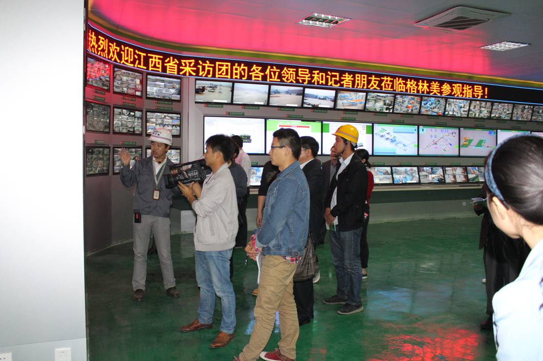 圖2.采訪團的領導和記者一行參觀格林美信息監控中心