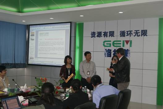 ? 圖一 格林美工作人員正在向國際論壇來賓詳細講解PCB全自動化拆解流程
