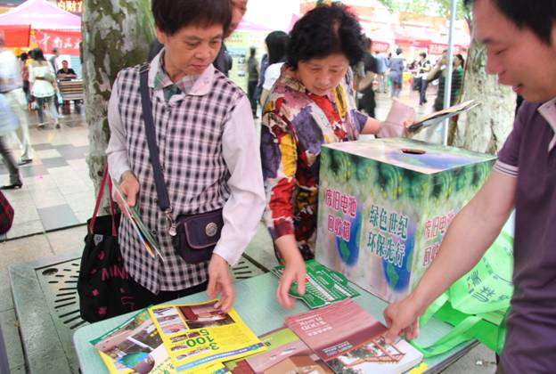 ??? 2012年5月19日,格林美于武漢市洪山區(qū)水果湖步行街參與了由省委宣傳部、省科技廳、省科協(xié)組織開展的“科技活動(dòng)周”活動(dòng)中的“科技惠民服務(wù)日”活動(dòng)。