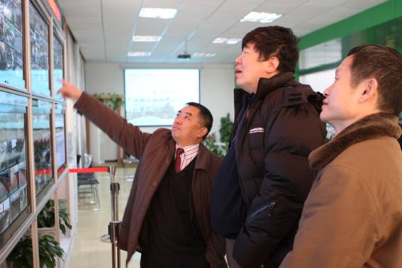 圖二 許開華董事長(zhǎng)向李新民巡視員介紹格林美各分、子公司的生產(chǎn)監(jiān)控圖并展示格林美完備的信息化建設(shè)情況
