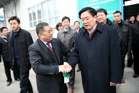 圖四 王國生省長握著許董事長的手,表示省政府堅決支持格林美做大做強在湖北的循環產業