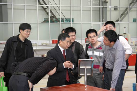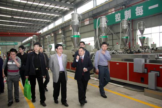 圖二 格林美2010年度股東大會參會代表在董事長許開華教授陪同下參觀塑木生產車間