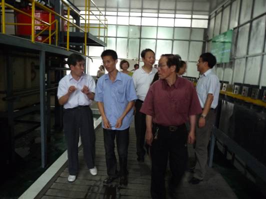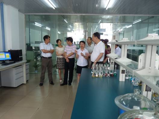 圖二 驗收組現場考察格林美的分析測試中心 圖三 驗收組現場考察格林美的粉末實驗中心 圖四 驗收組現場考察格林美的合成實驗室 圖五 驗收組現場考察格林美的工程技術研究中心