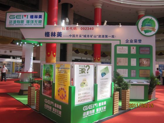 我公司為本次展會(huì)唯一特裝展位(展位號(hào):A070),共展出了電子廢棄物拆解產(chǎn)品、塑木型材及鈷粉、鎳粉等系列資源再生產(chǎn)品。圖文展示了格林美公司宣傳片及電子廢棄物零排放拆解工藝。別致優(yōu)美的展會(huì)場景和公司優(yōu)良品質(zhì)的產(chǎn)品受到了來自國內(nèi)外同行的贊許,吸引了眾多國內(nèi)外采購商前來交流與洽談。本次展會(huì)充分展示我公司在資源再生領(lǐng)域所取得的成績,為公司產(chǎn)品起到了良好的宣傳效果,極大的提高了格林美產(chǎn)品品牌知名度和影響力。