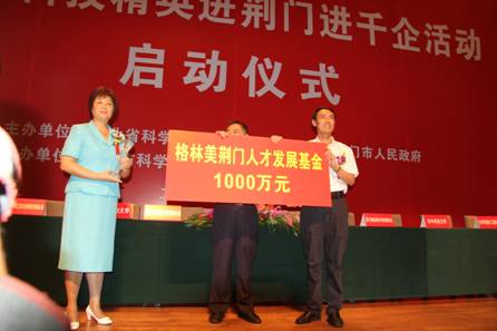 ??? 2012年7月23日,武漢東湖國(guó)際會(huì)議中心,風(fēng)和日麗,彩旗飄揚(yáng),由湖北省科技廳、荊門(mén)市委、市人民政府主辦的“千名科技精英進(jìn)荊門(mén)進(jìn)千企”活動(dòng)在此舉行,由荊門(mén)市委人才工作領(lǐng)導(dǎo)小組和我公司聯(lián)合設(shè)立的“格林美荊門(mén)人才發(fā)展基金”也舉行了隆重和熱烈的捐贈(zèng)儀式,荊門(mén)市委常務(wù)、市委組織部部長(zhǎng)王本舉代表荊門(mén)市委、市政府接收了格林美公司的捐贈(zèng),荊門(mén)市委書(shū)記王玲為格林美董事長(zhǎng)許開(kāi)華教授頒發(fā)了“支持荊門(mén)人才事業(yè)發(fā)展愛(ài)心人士”杯,許董事長(zhǎng)發(fā)表了題為“來(lái)荊門(mén)創(chuàng)業(yè),實(shí)現(xiàn)大發(fā)展”的熱情洋溢的演講,號(hào)召?gòu)V大科技精英到荊門(mén)發(fā)展與創(chuàng)業(yè),為荊門(mén)企業(yè)服務(wù),許董事長(zhǎng)的演講激起會(huì)場(chǎng)多次掌聲,將活動(dòng)推向高潮。最后,省政府郭生練副省長(zhǎng)、省科技廳劉傳鐵廳長(zhǎng)、荊門(mén)市委王玲書(shū)記等省市領(lǐng)導(dǎo)與公司董事長(zhǎng)共同啟動(dòng)了“格林美荊門(mén)人才發(fā)展基金”。