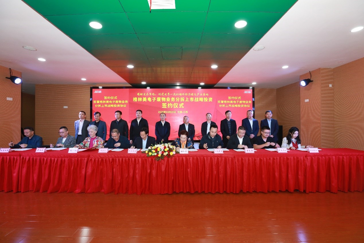會上,格林美與豐城市政府簽署了戰略合作協議,并與戰略投資者簽署格林美電子廢物業務分拆上市戰略投資協議。