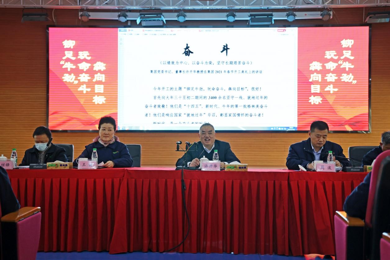 新春茶話會第二部曲,由許開華董事長發表講話,為開工點“金”。2018年——幸福都是奮斗出來的;2019年——吃苦,就是奮斗的體現;2020年——重塑奮斗精神,堅守“搶”、“敢”、“拼”。四年來,許開華董事長每一次關于“奮斗精神”的講話都鏗鏘有力、入腦入心。在2021年的新春茶話會上,許開華董事長再次以“奮斗”為主題,開啟牛年第一次靈魂大洗禮,號召全體格林美人以績效為中心、以奮斗為榮,堅守長期艱苦奮斗。