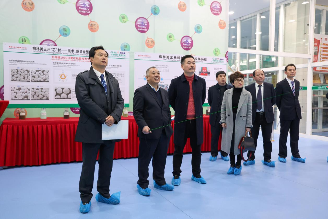 圖6 楊才學(xué)董事長一行(左三)參觀格林美三元材料制造中心