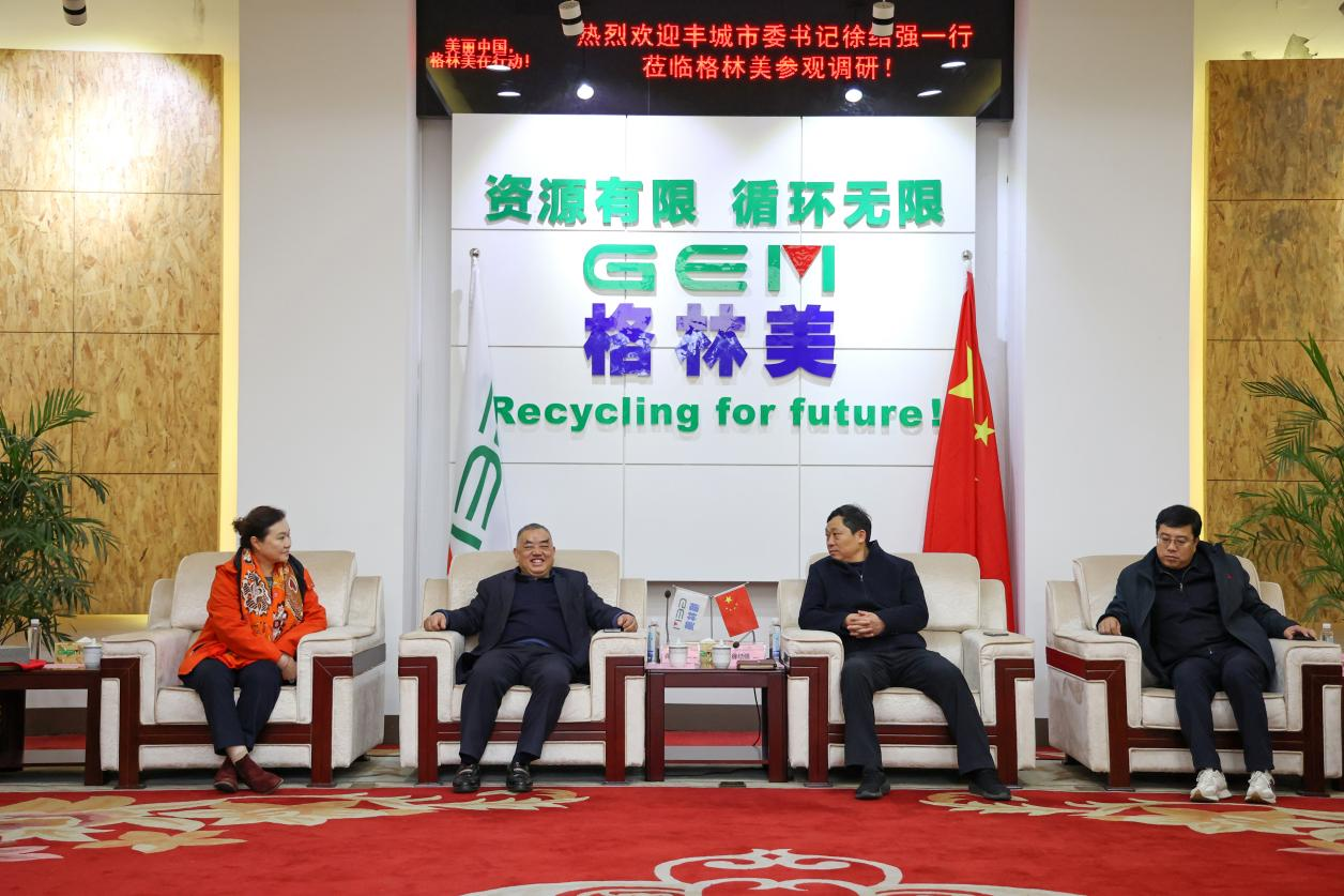 2022年2月20日,豐城市委書記徐結強一行蒞臨格林美荊門園區參觀調研。豐城高新區管委會主任劉新根,豐城市人民政府副市長郭瑞清,豐城高新區管委會副主任、循環園區黨委書記王華波,豐城市商務局黨組書記何曉輝等陪同調研。格林美創始人、集團黨委書記、董事長許開華教授,格林美聯合創始人、集團董事王敏女士熱情接待了徐結強書記一行。