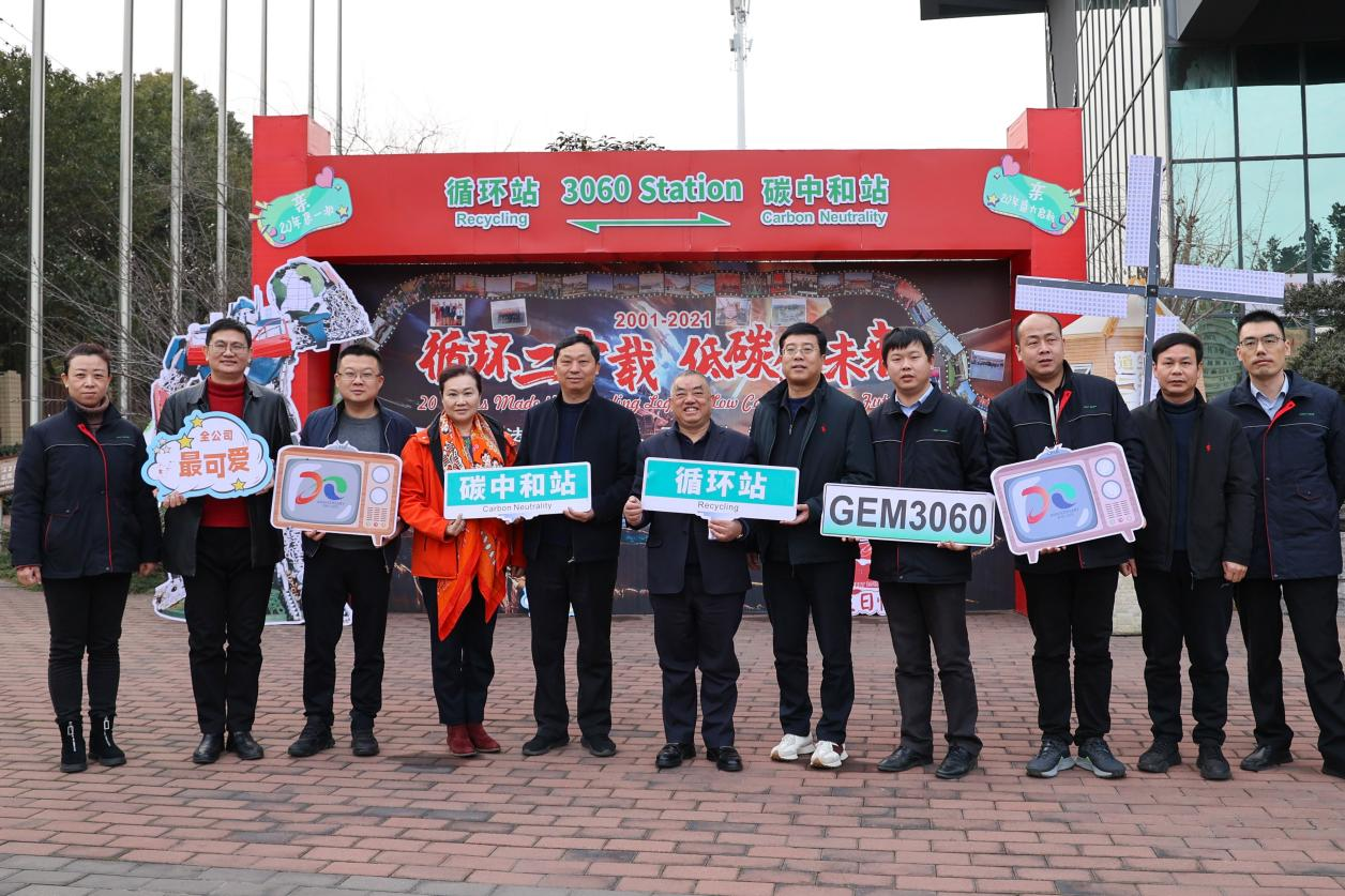 圖5 徐結強書記(左五)一行與格林美、格林循環管理層在格林美20周年打卡站合影