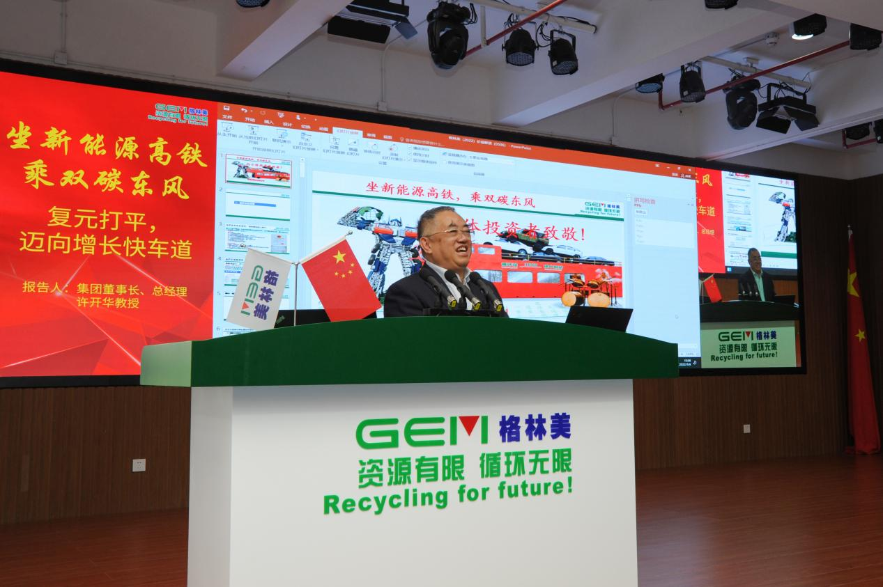 會上,許開華董事長在致辭中向廣大投資者致敬,并詳細介紹了格林美的基本情況、發(fā)展脈絡(luò)和產(chǎn)業(yè)布局。在《復元打平,邁向增長快車道》的主題報告中,許開華董事長表示,“復元打平,邁向增長快車道”是格林美2021年的關(guān)鍵詞,‘把2020年疫情損失補回來,把2021年增長速度跑出來’是格林美2021年的總目標。2021年,格林美坐新能源高鐵,乘雙碳東風,復元打平,順利實現(xiàn)2021年全年精彩,業(yè)績答卷亮點紛呈。規(guī)劃2022~2026年愿景,格林美制定了6大戰(zhàn)略經(jīng)營目標,將以“產(chǎn)能大釋放、產(chǎn)品高端化、業(yè)績高增長,讓投資者心動”為發(fā)展關(guān)鍵詞,踔厲奮發(fā),年年交出靚麗業(yè)績答卷。