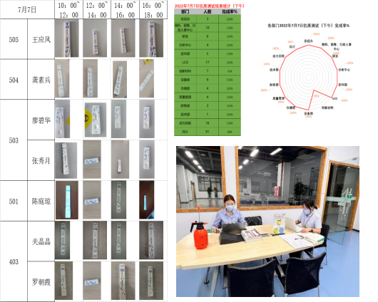 7月2日,園區(qū)進(jìn)入閉環(huán)生產(chǎn)管理階段,園區(qū)管理班子和信息組連夜組織流調(diào)信息排查復(fù)核,奮戰(zhàn)到凌晨5點(diǎn),全面建檔,全面數(shù)據(jù)化、表格化,掌握全員合租信息、小區(qū)管控信息,了解外圍風(fēng)險(xiǎn)點(diǎn),組織人員流調(diào),實(shí)時(shí)更新員工所在地核酸和抗原檢測情況。當(dāng)?shù)卣M織排查高風(fēng)險(xiǎn)地區(qū)人員密接情況時(shí),無錫園區(qū)第一時(shí)間拿出數(shù)據(jù),對全公司員工逐一進(jìn)行風(fēng)險(xiǎn)審核。正是有了信息組的精準(zhǔn)統(tǒng)計(jì),指揮部才能快速判定情況,下達(dá)指令,并協(xié)助政府迅速篩查風(fēng)險(xiǎn)人員,對有風(fēng)險(xiǎn)人員做好隔離防控,保障所有員工的健康安全。