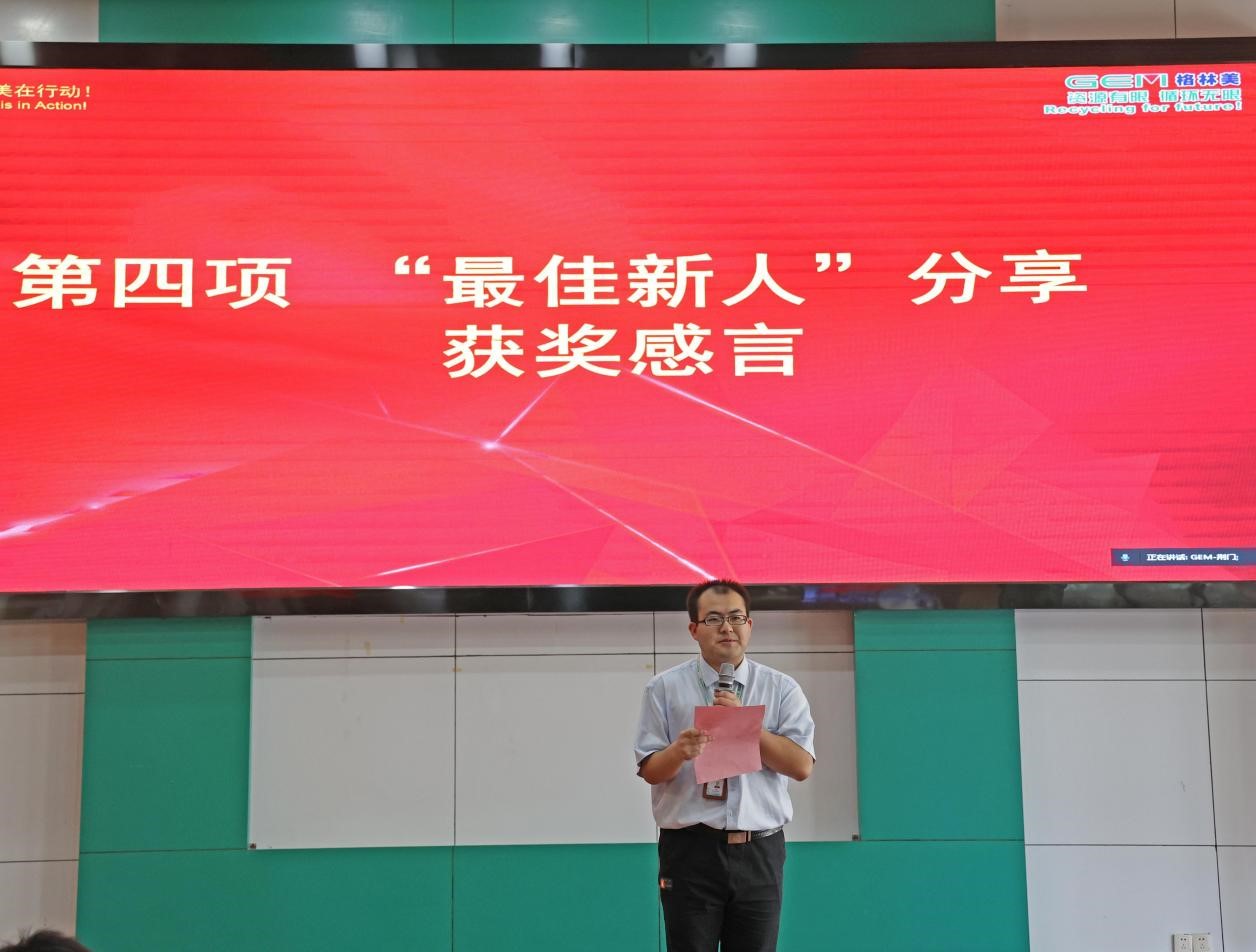先進團隊代表和最佳新人上臺發(fā)表感言。他們表示,感謝格林美充滿無限可能的發(fā)展平臺,感謝一路走來亦師亦友的領導同事,以后必將以更飽滿的激情投入崗位,以孜孜以求的態(tài)度充實自己,向著格林美人共同的綠色夢想攜手奮進、不負韶華。