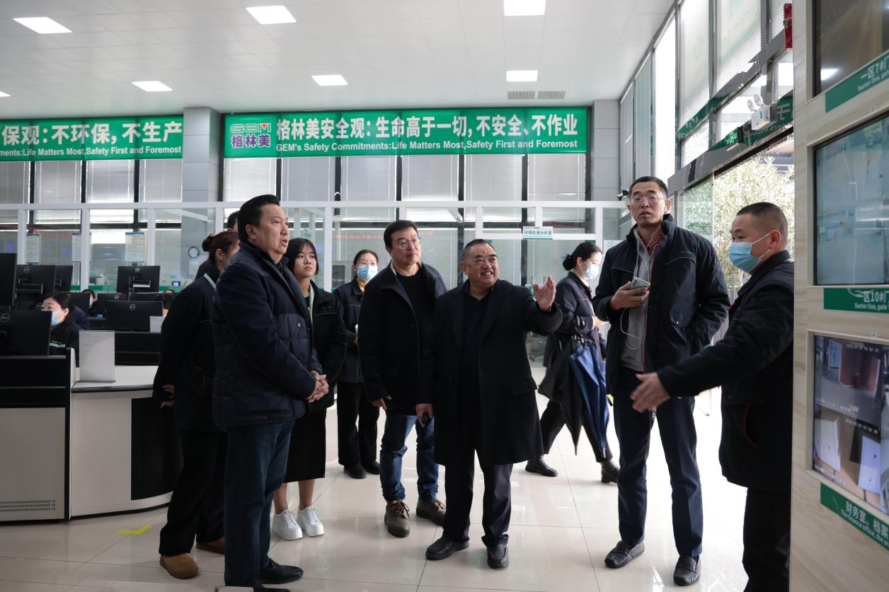 隨后,許開華董事長帶領(lǐng)Garibaldi Thohir先生一行先后參觀了格林美“城市礦山”博物館、國家城市礦產(chǎn)示范基地分析檢測中心、電子廢棄物處理中心、電池廢料處理產(chǎn)線、三元原料制造中心、電積車間、安環(huán)管理控制中心、高鎳三元鎳鈷錳(NCM)制造中心、高鎳正極材料制造中心、高純硫酸鎳晶體制造中心、固態(tài)廢物處理中心。