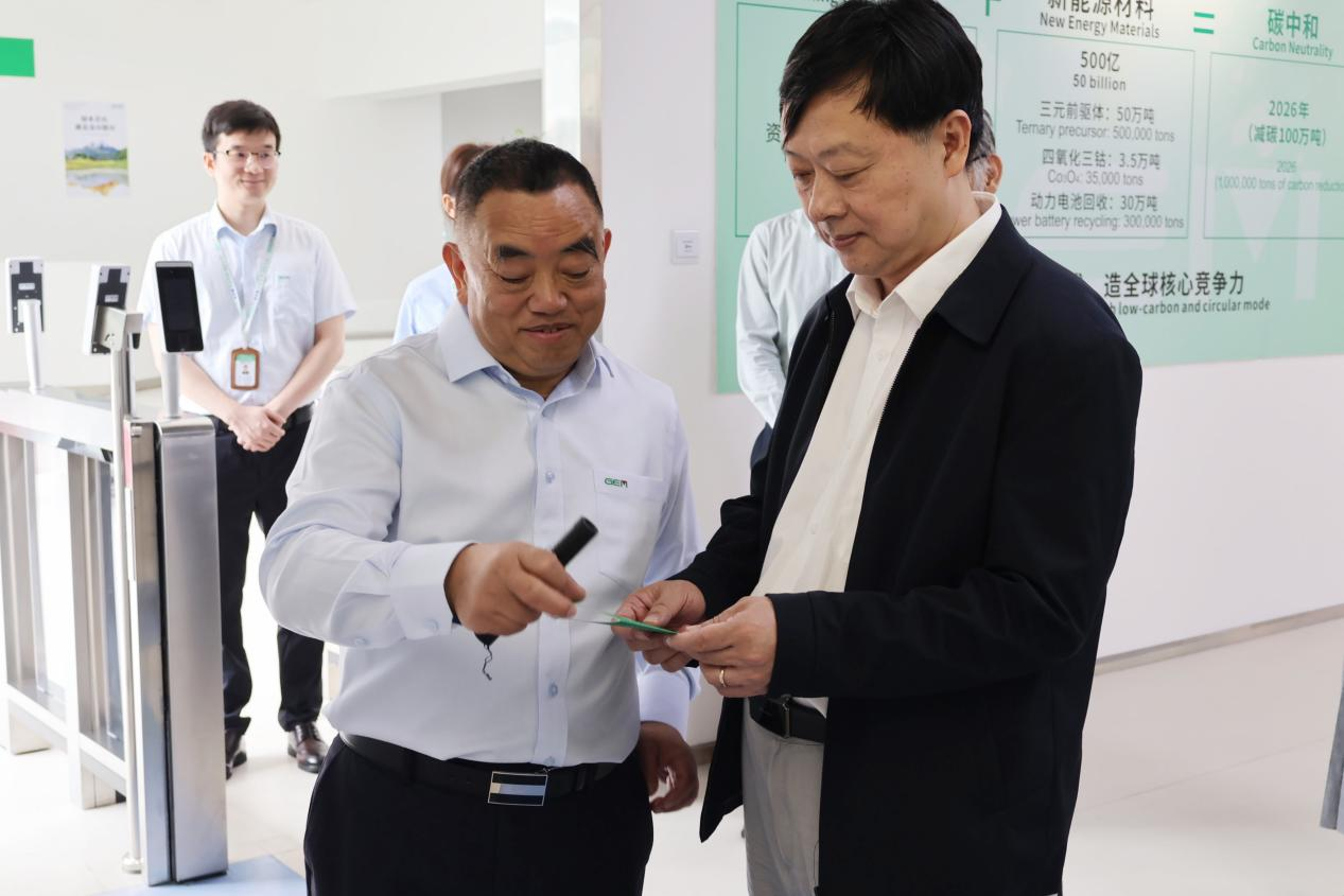 集團副總經理張薇、集團創新驅動辦主任杜柯、格林美(深圳)超級綠色技術研究院常務副院長華文超、格林美(深圳)循環科技有限公司總經理謝付樂等陪同參觀。