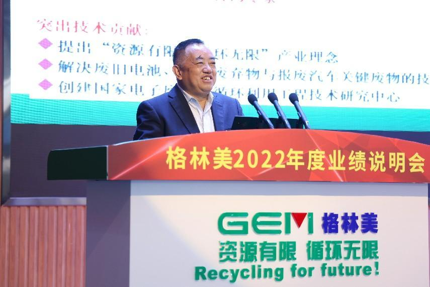 會上,許開華董事長在致辭中向全球投資者與社會各界致敬,衷心感謝全球投資者與社會各界對格林美綠色循環產業的大力支持!許開華董事長以“業績、出海、通道”三個關鍵詞描述格林美踏浪出海、大開通道、經營業績創歷史新高的2022年靚麗答卷。他指出,2022年,格林美產能大幅釋放,經營業績逆勢創歷史新高,實現營業收入293.92億元,同比增長52.28%,實現凈利潤12.96億元,同比增長40.4%;資本出海,成功登陸瑞交所,綠色產業被全球資本市場認同,讓全球資本為公司綠色產業布局插上翅膀;產業出海,印尼鎳資源項目一期建成投產,成為中國印尼合作的亮點工程;大開通道,突圍內卷,昂首通往歐美新市場。許開華董事長還總結2022年格林美五大亮點:動力電池回收規?;?,立起新的增長極;鎳鈷回收擴容增量,夯實鎳鈷原料體系底盤;全球合作,核心市場與核心供應定義未來5年發展;創新倍增,攻關多個最新一代產品技術,昂首邁入行業技術領先區;垂范綠色,ESG價值閃亮世界,全年各項工作亮點紛呈。