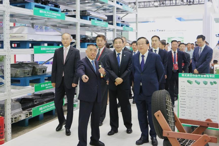 圖8 中國工程院孫逢春院士(前排右二)蒞臨格林美展臺參觀指導