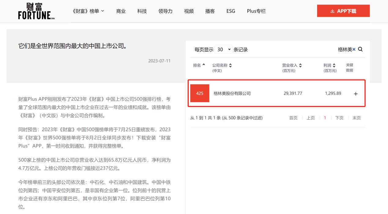 2023年7月11日,2023年《財(cái)富》中國上市公司500強(qiáng)排行榜出爐,格林美憑借2022年?duì)I業(yè)收入293.92億元的光輝業(yè)績成功入圍,位列第425位。