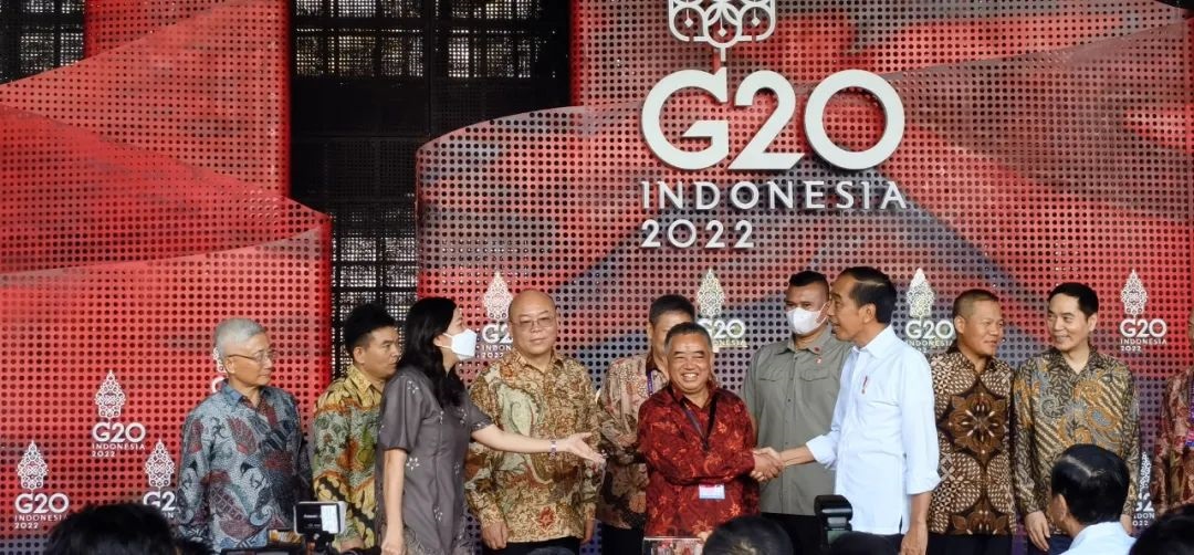 2022年G20峰會期間,佐科總統(前排右一)接見許開華董事長(前排中)等中國企業家代表