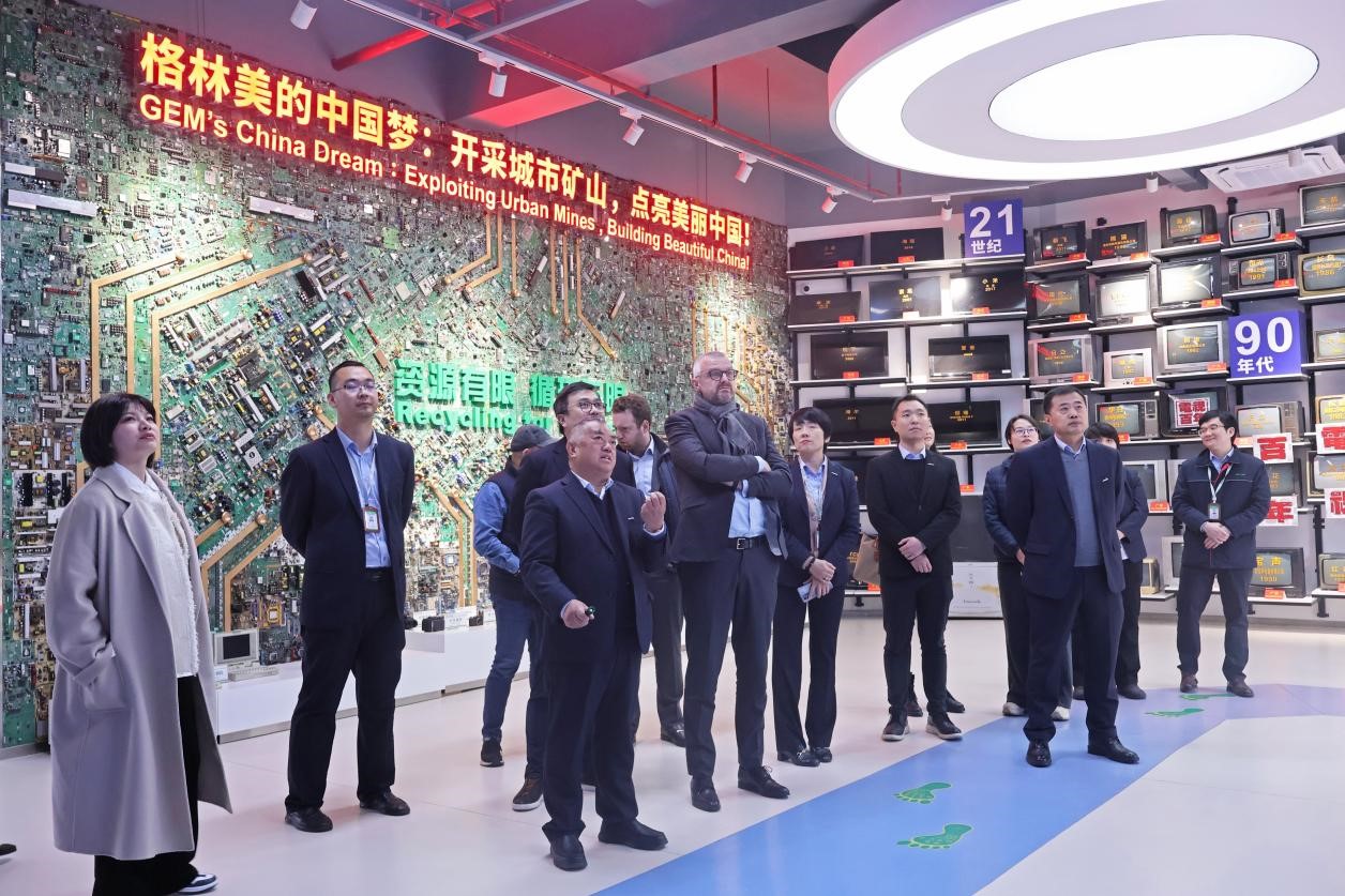 圖5 簽約儀式前,英美資源集團全球市場營銷總監(鎳及不銹鋼原料)John Eastwood先生一行參觀格林美“城市礦山”博物館
