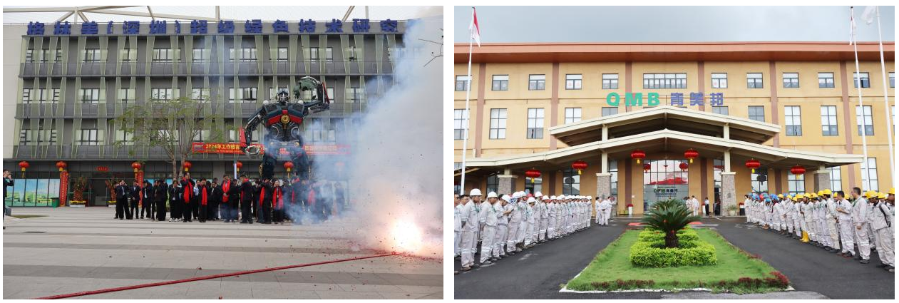 上午8時48分,各園區舉行開工儀式,鞭炮齊鳴、禮花沖天,恭賀開工大吉、龍行大運,在喜慶和歡騰的氣氛中,奮發向上的格林美人以嶄新的精神面貌迎接2024年,吹響新春“龍騰虎躍”的號角。