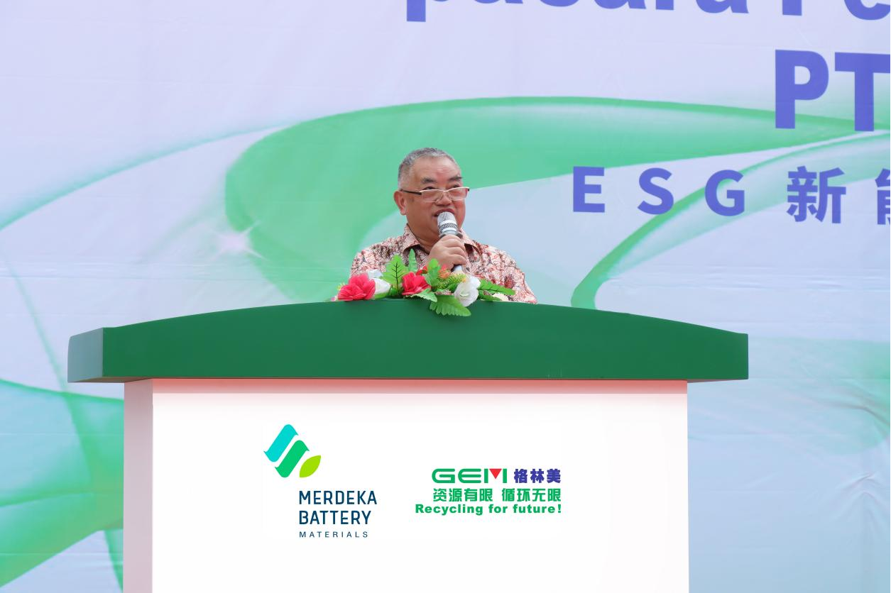 儀式上,Garibaldi Thohir先生發表致辭。他首先感謝許開華教授與格林美團隊的辛勤付出與技術支持,這是ESG項目發展如此迅猛的關鍵因素。他表示,將會持續關注ESG項目在第四季度的順利啟用,期待與各位合作伙伴在全球能源轉型背景下,一同成為電動汽車價值鏈中的領軍者!