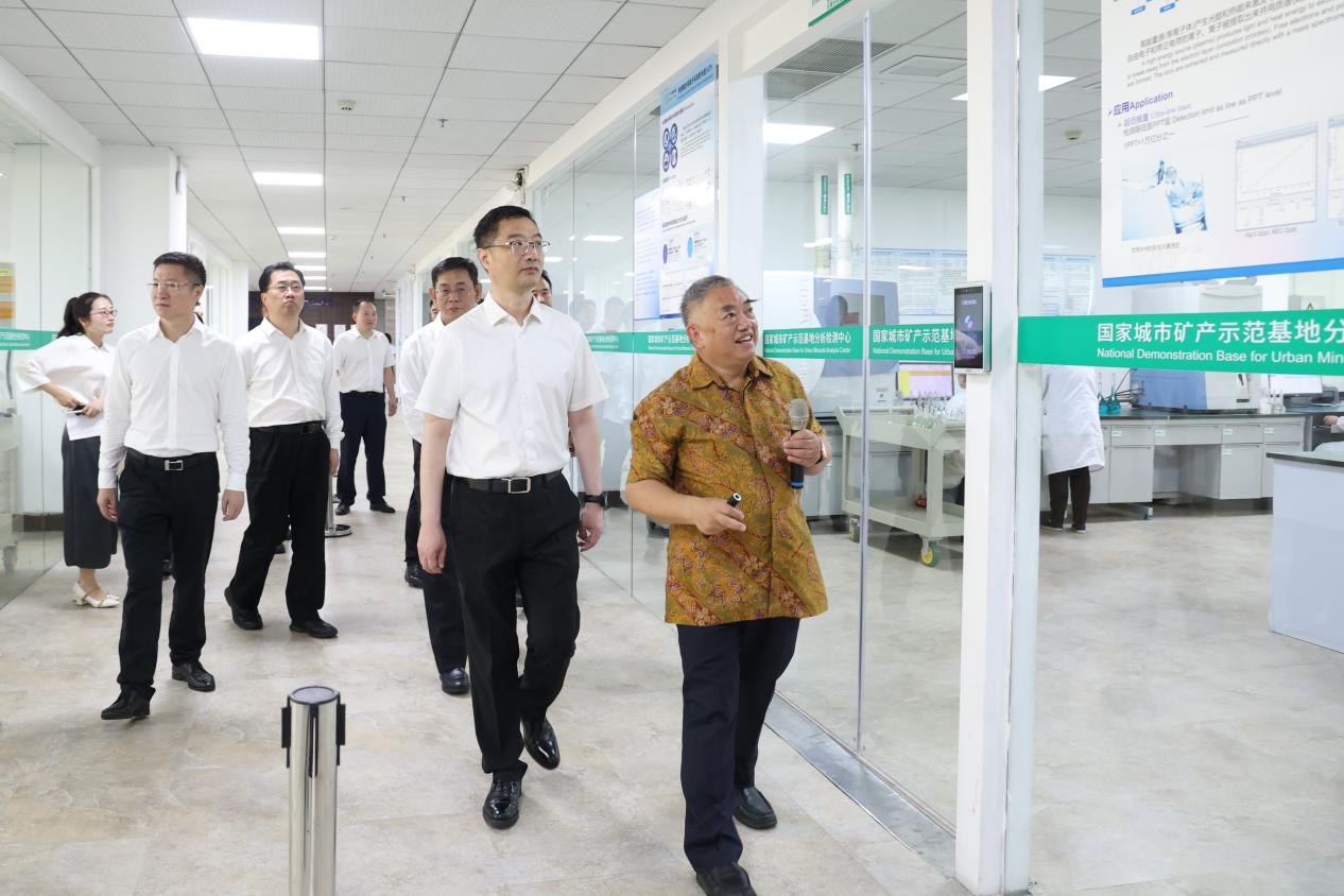 圖2 寧詠部長一行參觀國家電子廢棄物循環利用工程技術研究中心與國家能源金屬資源與新材料重點實驗室