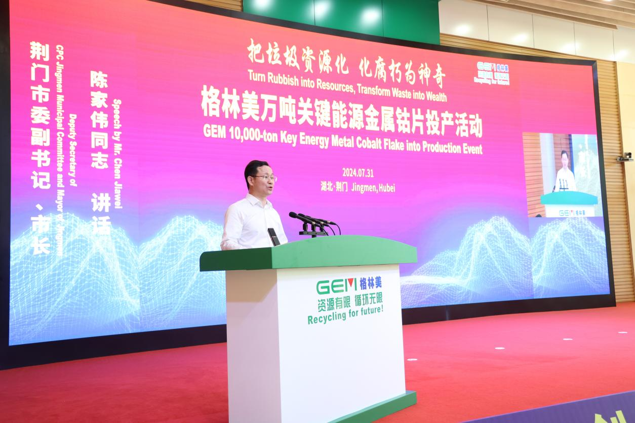 2024年7月31日,格林美萬噸能源金屬鈷片投產活動在荊門園區隆重舉行。近200位前來參加湖北省上半年工業經濟運行分析會的領導與嘉賓蒞臨現場出席見證。荊門市市長陳家偉,湖北省經濟和信息化廳總工程師盛章學,荊門市副市長周俊杰,荊門高新區管委會常務副主任、掇刀區區長王瑋,格林美集團董事長許開華教授等共同推桿啟動格林美萬噸關鍵能源金屬鈷片項目投產,為格林美注入高質量發展的磅礴之力。