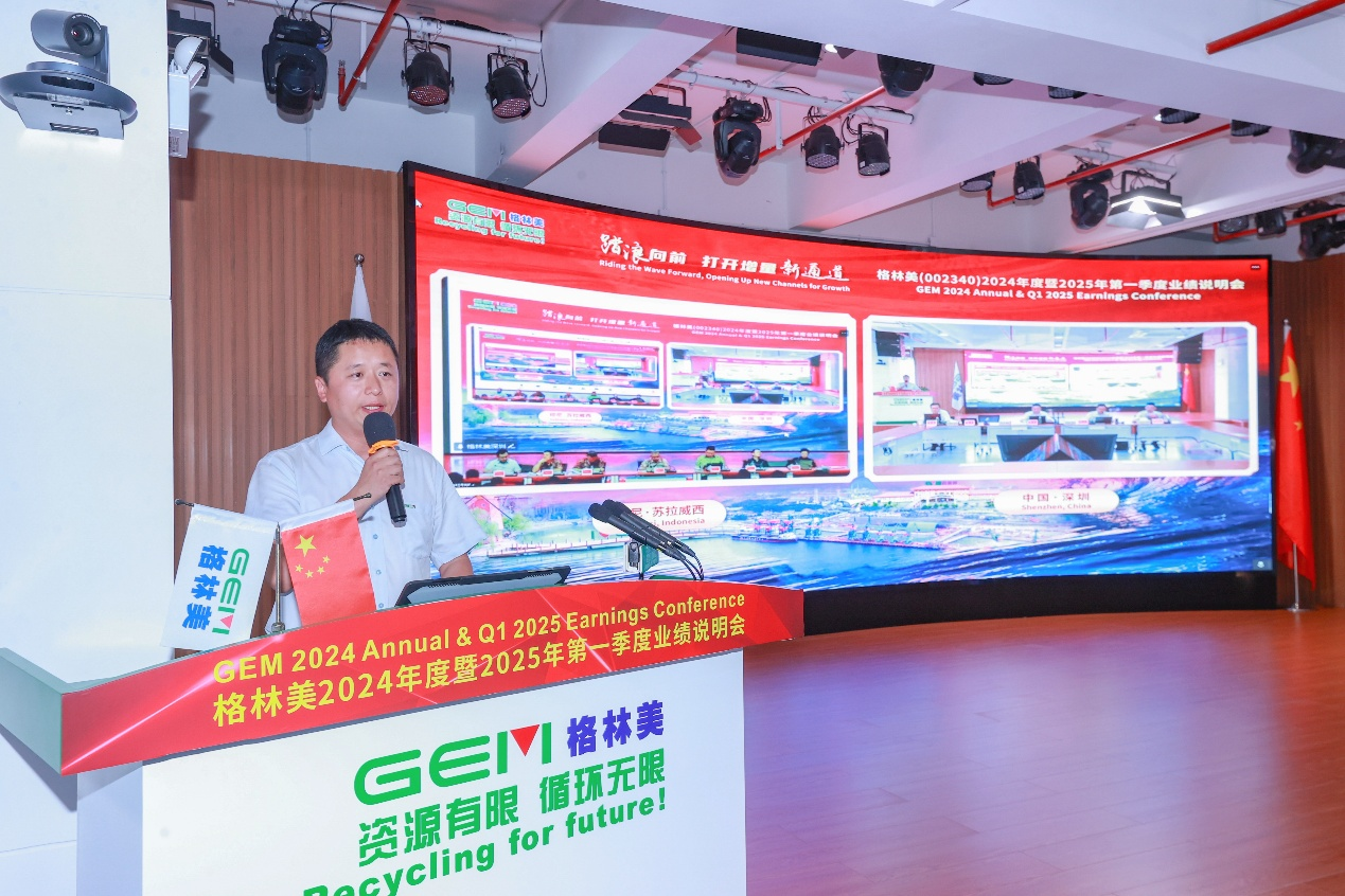 2025年5月6日,格林美以印尼蘇拉威西與中國深圳兩地連線+線上直播的融合形式,隆重召開主題為“踏浪向前,打開增量新通道”的2024年度暨2025年第一季度業(yè)績說明會(huì)。集團(tuán)董事長許開華教授親臨會(huì)場并發(fā)表題為《踏浪向前,打開增量新通道》的年度報(bào)告,報(bào)告以中英雙語形式,向現(xiàn)場近百位金融機(jī)構(gòu)代表、媒體精英及線上超十萬名全球投資者、網(wǎng)友,全景式展現(xiàn)了格林美立足全球的產(chǎn)業(yè)競爭優(yōu)勢、引領(lǐng)行業(yè)的技術(shù)創(chuàng)新格局,以及在ESG價(jià)值創(chuàng)造領(lǐng)域形成的標(biāo)桿性實(shí)踐成果。