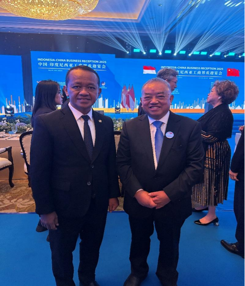 圖6 格林美董事長許開華教授與印尼能源和礦產部部長Bahlil Lahadalia先生在中印尼工商會晚宴合影