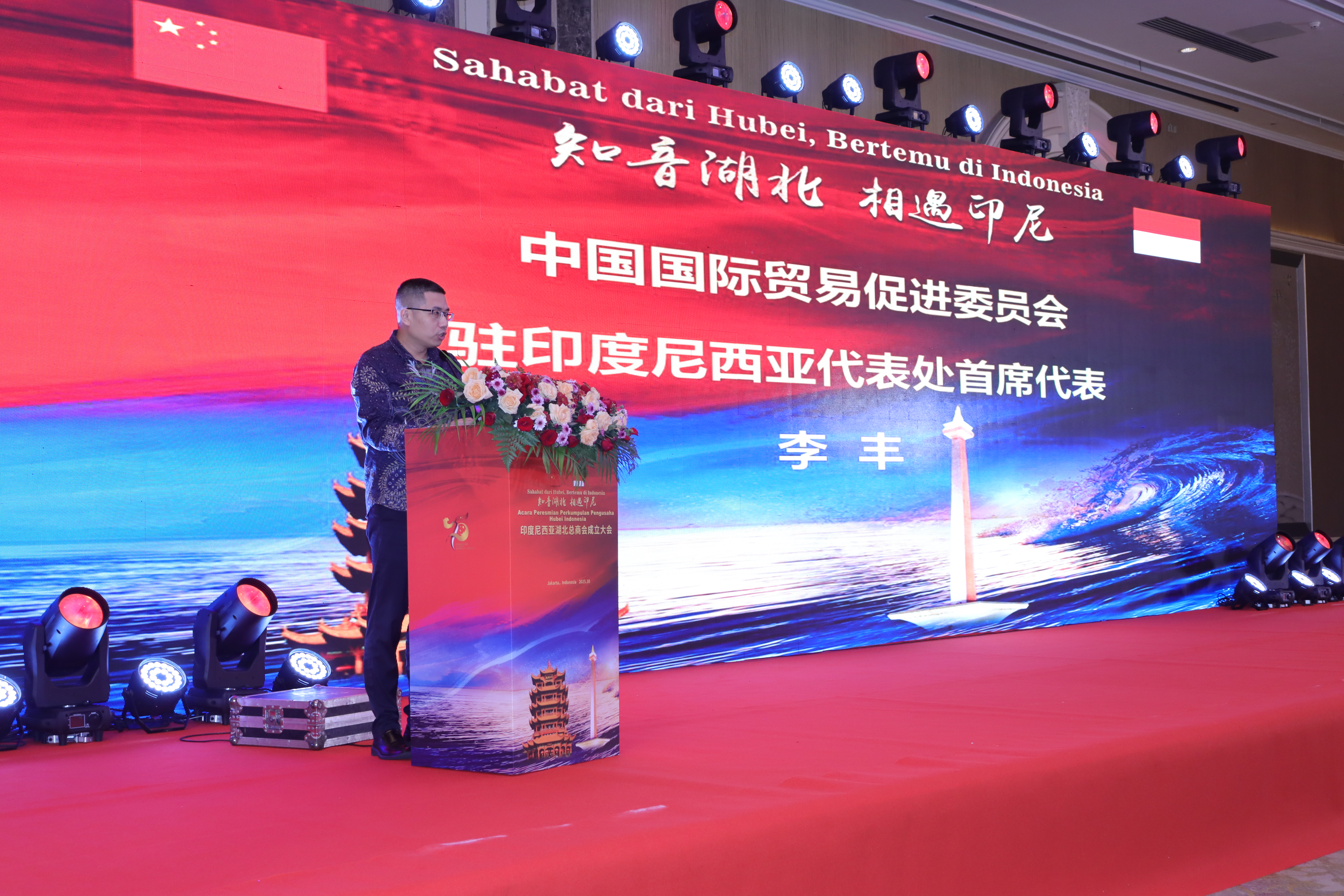 ▲中國國際貿易促進委員會駐印尼代表處首席代表李豐致辭