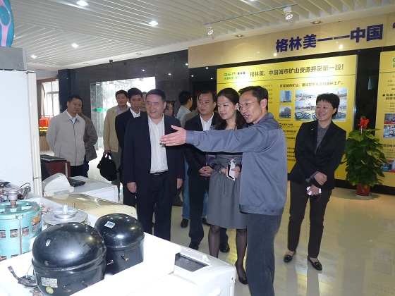 2011年10月14日,湖北宜昌市政府副市長(zhǎng)吳靜率宜昌市政府有關(guān)部門和企業(yè)負(fù)責(zé)人一行20多人,在武漢格林美資源循環(huán)有限公司總經(jīng)理王健和荊門格林美新材料有限公司常務(wù)副總經(jīng)理孫文力陪同下參觀考察了荊門格林美城市礦產(chǎn)...