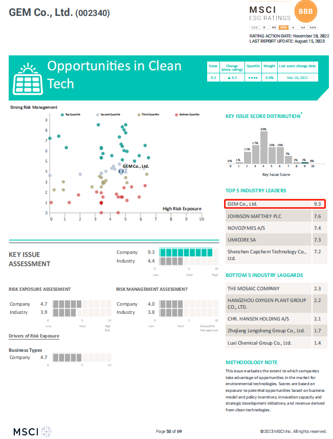 2023年8月15日,全球最大指數(shù)公司之一、全球最大的獨(dú)立指數(shù)公司——摩根士丹利資本國(guó)際公司(Morgan Stanley Capital International, MSCI,中文名明晟)發(fā)布ESG最新評(píng)級(jí),格林美在清潔技術(shù)機(jī)遇議題得分中位居同行業(yè)全球第...