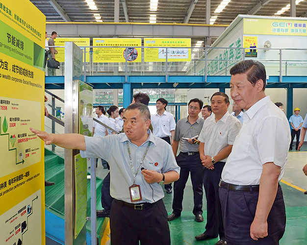 永遠的東風、永恒的激情、永久的動力 2013年7月22日上午,習近平總書記視察格林美武漢園區電子廢棄物綠色處理車間。習總書記高度肯定格林美,并現場指示:“變廢為寶、循...