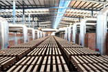 廢渣、廢泥烘干 → 頁巖或煤矸石等輔料破碎 → 篩分 → 化驗(yàn)配方 → 添加內(nèi)燃料 → 混合攪拌 → 陳化 → 強(qiáng)力攪拌 → 真空擠出 → 切條切坯 → 碼坯 → 物理干燥 → 燒結(jié) → 成品出窯。