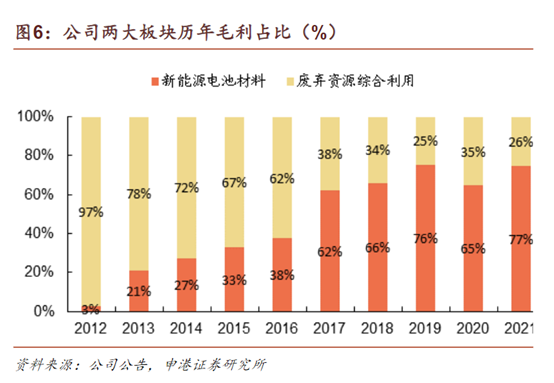 自2016年起,公司三元前驅體產能迅速擴大,從不足3萬噸,擴展到23萬噸。產能的擴張與釋放使新能源電池材料營收高速增長,迅速成為三元前驅體全球龍頭。