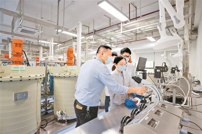 桃花源科技創新生態園內,專家在超高鎳動力芯材料實驗室開發高鎳三元前驅體。深圳特區報記者 劉鋼 攝