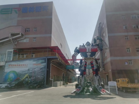 園區內矗立著一架由廢棄汽車零件組裝成的“鋼鐵巨人” 韋璐攝