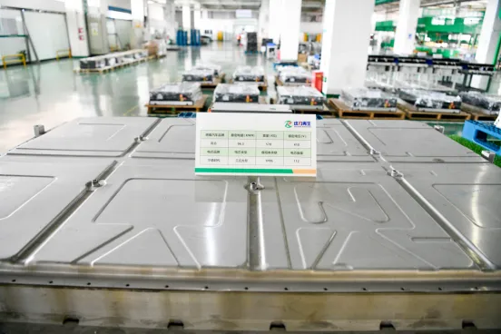 廠房中陳列著來自國內(nèi)外知名品牌車企的電池包。