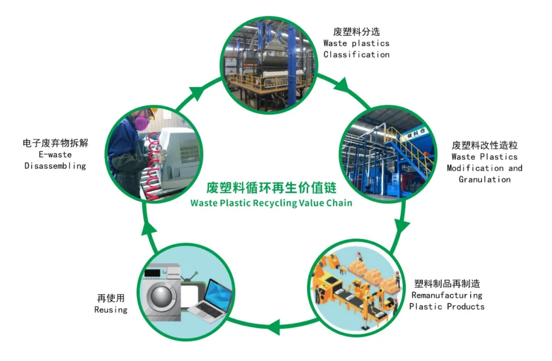 江西格林循環(huán)產(chǎn)業(yè)股份有限公司(簡稱:格林循環(huán)或公司)成立于2010年5月,是著名循環(huán)經(jīng)濟產(chǎn)業(yè)集團格林美集團(股票代碼002340)控股的以塑料再生改性為主的高新技術(shù)企業(yè)。歷經(jīng)十余年發(fā)展,目前已經(jīng)形成了“電子廢棄物拆解-廢塑料再生改性-廢電路板稀貴金屬回收”的綠色循環(huán)綜合利用產(chǎn)業(yè)鏈,同時聚焦解決廢塑料資源開發(fā)和高性能改性再生塑料應(yīng)用的難題,成功開創(chuàng)了“廢舊產(chǎn)品-回收拆解-資源化-改性再造-新產(chǎn)品”的廢塑料全產(chǎn)業(yè)鏈循環(huán)經(jīng)濟模式,產(chǎn)品進入世界級品牌供應(yīng)商,成為中國領(lǐng)先的高品質(zhì)再生塑料供應(yīng)商。