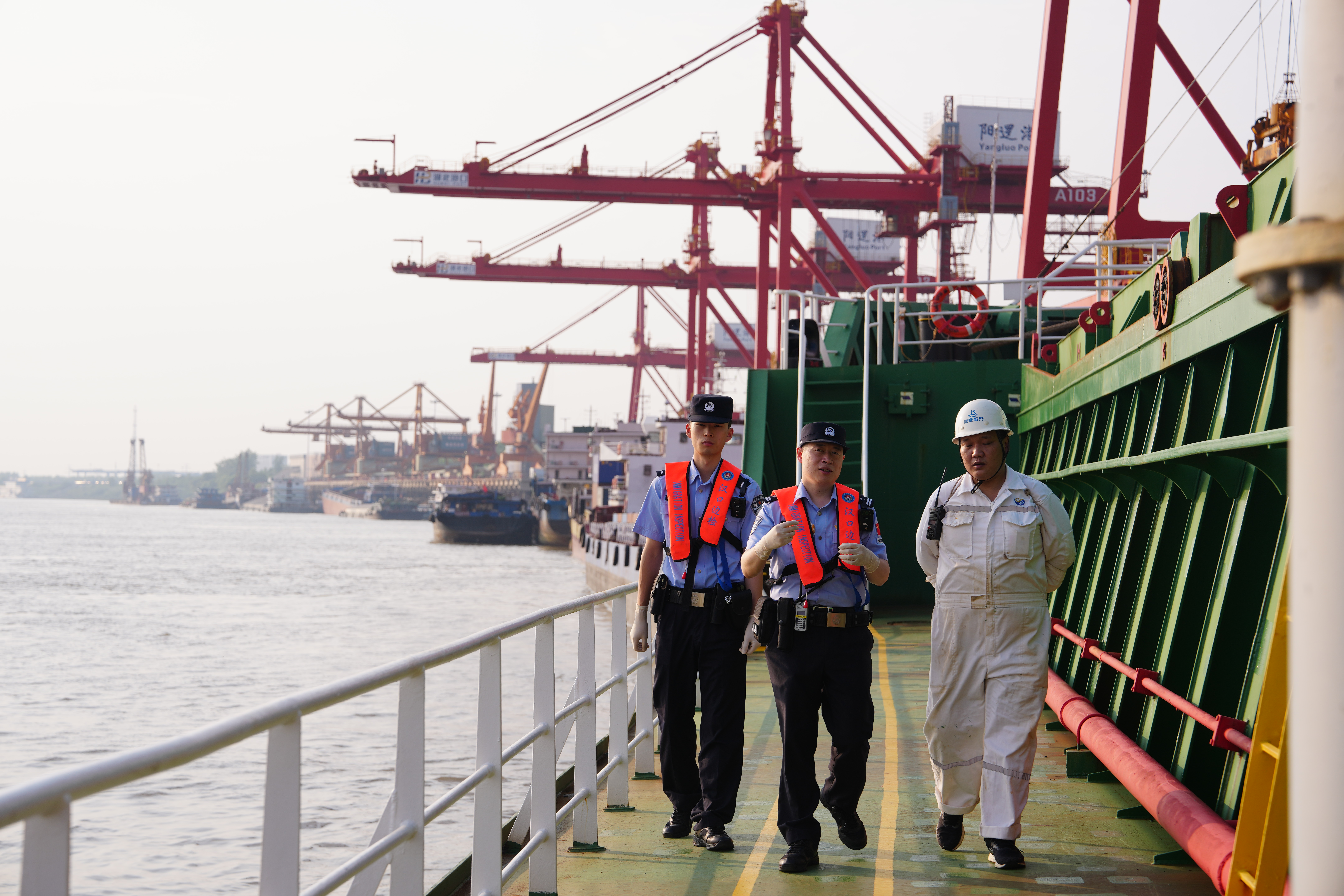 漢口邊檢站移民管理警察登輪開展船體檢查