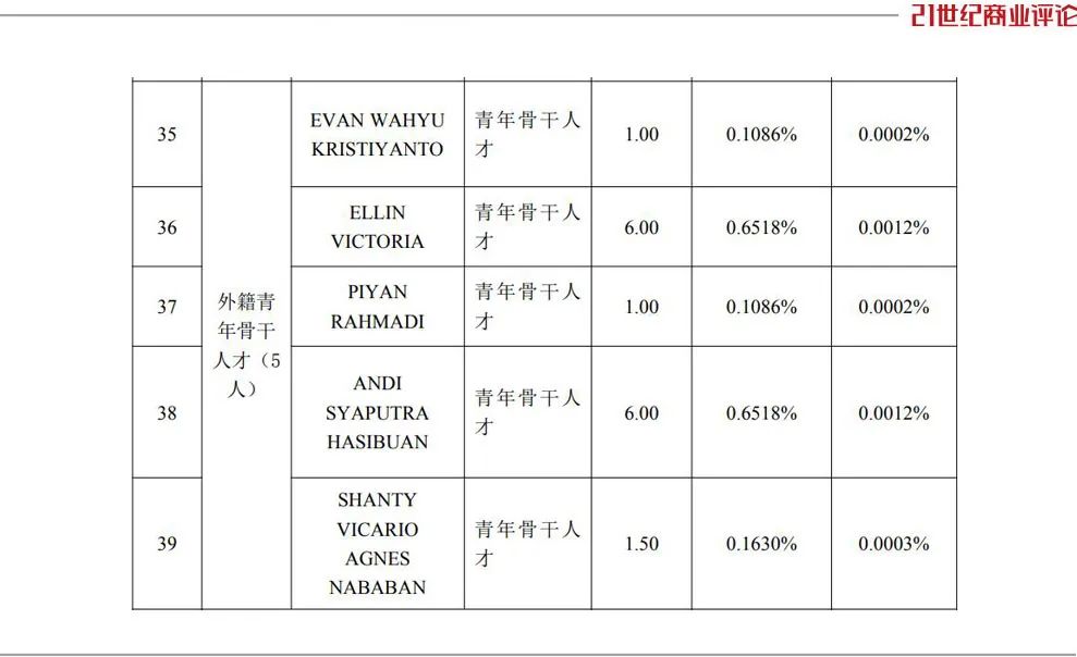 11月6日,格林美完成股權激勵計劃,ANDI SYAPUTRA HASIBUAN等5名外籍員工,以每股3.18元的價格共獲得15.5萬股。