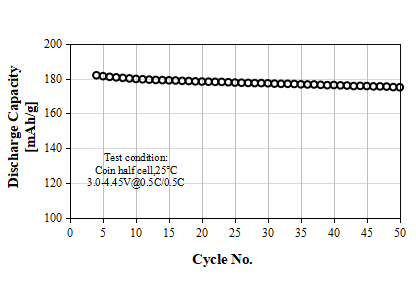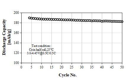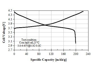 L-6003D產品特點:單晶或類單晶形貌,高電壓,高容量