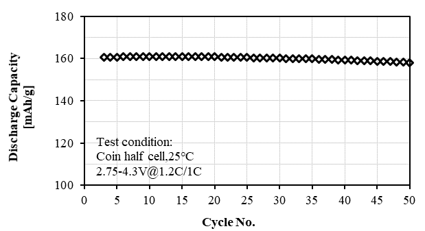 L-5021產品應用:用于18650圓柱電芯,4.2V下測試,0.2C放電比容量為168mAh/g,循環性能:1C/10C,1000圈≥80%,可用電動工具。